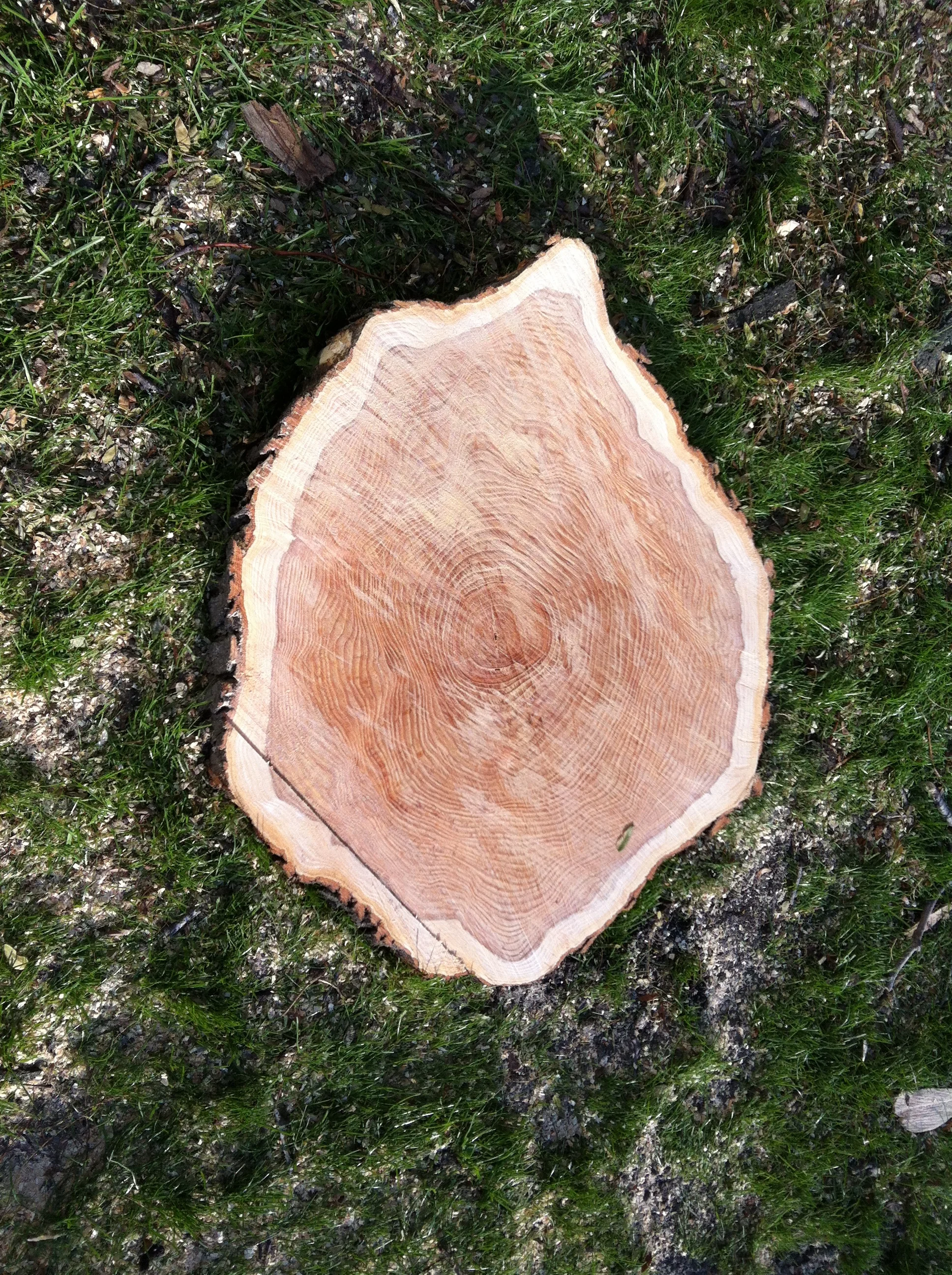 This was made from a slab of an urban forested tree in Chicago. The top is end grain Honey Locust.This piece has been finished with three coats of polyurethane. Sanding was done before the second and third coats to enhance the quality of the satin finish. The metal base has a black enamel finish with honeysuckle plugs to prevent the Legs from scratching the floor. Welded finished and designed in three months. Slab air dryed for two years. Air drying was choosen to allow the wood to help inform the shape of the table. The legs were developed from the fiborous nature of the material. The dialogue between legs and top is inspired by the verticality of the grain. The language that the legs employ mimic the indivual fibers that are visible in the wooden top. The minimal emphasis on the legs shifts the focus on the sculptural and natural aesthetic qualities of the wood which is common in live edge wood.